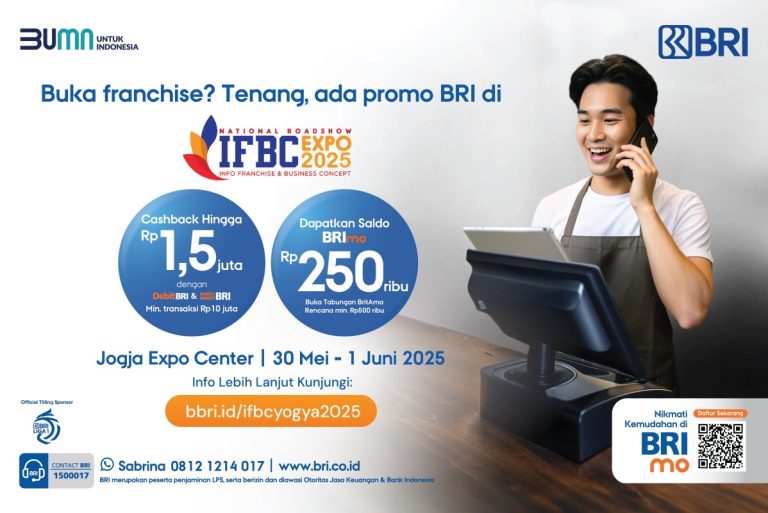 Yogyakarta, 30 Mei 2025 – Kabar baik bagi para calon pebisnis dan pencari peluang usaha! Dalam rangka mendukung semangat wirausaha, BRI hadir memberikan promo spesial di ajang IFBC (Info Franchise & Business Concept) Expo 2025 yang berlangsung di Jogja Expo Center pada 30 Mei – 1 Juni 2025.
