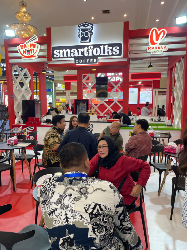 SMARTFOLKS COFFEE menjadi andalan Makana Group di segmen coffee shop urban, menghadirkan suasana modern yang cocok untuk kalangan profesional muda, pelajar, dan komunitas kreatif. Dengan lebih dari 88 outlet aktif di seluruh Indonesia, brand ini kini ditawarkan dengan harga kemitraan spesial, dari sebelumnya Rp233 juta, kini menjadi hanya Rp188 juta khusus selama pameran IFBC berlangsung.