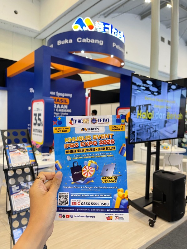 Melalui program patungan mulai dari Rp 25 jutaan, MFlash menegaskan bahwa siapapun bisa memiliki usaha tanpa perlu menjadi ahli bisnis. Dengan sistem manajemen profesional, pengalaman lebih dari 15 tahun, serta reputasi bintang lima di Google, MFlash menawarkan bisnis berpotensi tinggi yang dibutuhkan masyarakat modern. Mitra akan mendapatkan keuntungan berupa return 35% per tahun, balik modal 3 tahun, serta potensi keuntungan bersih hingga Rp100 juta per bulan. Para calon pemilik usaha juga berkesempatan mendapatkan hadiah langsung dan undian eksklusif di Indonesia Franchise Week 2025, cukup dengan mengisi data kolaborasi di booth MFlash (Hall 1–2, Booth G1). Tak hanya itu, brosur MFlash juga dapat ditukarkan dengan merchandise menarik selama persediaan masih ada.